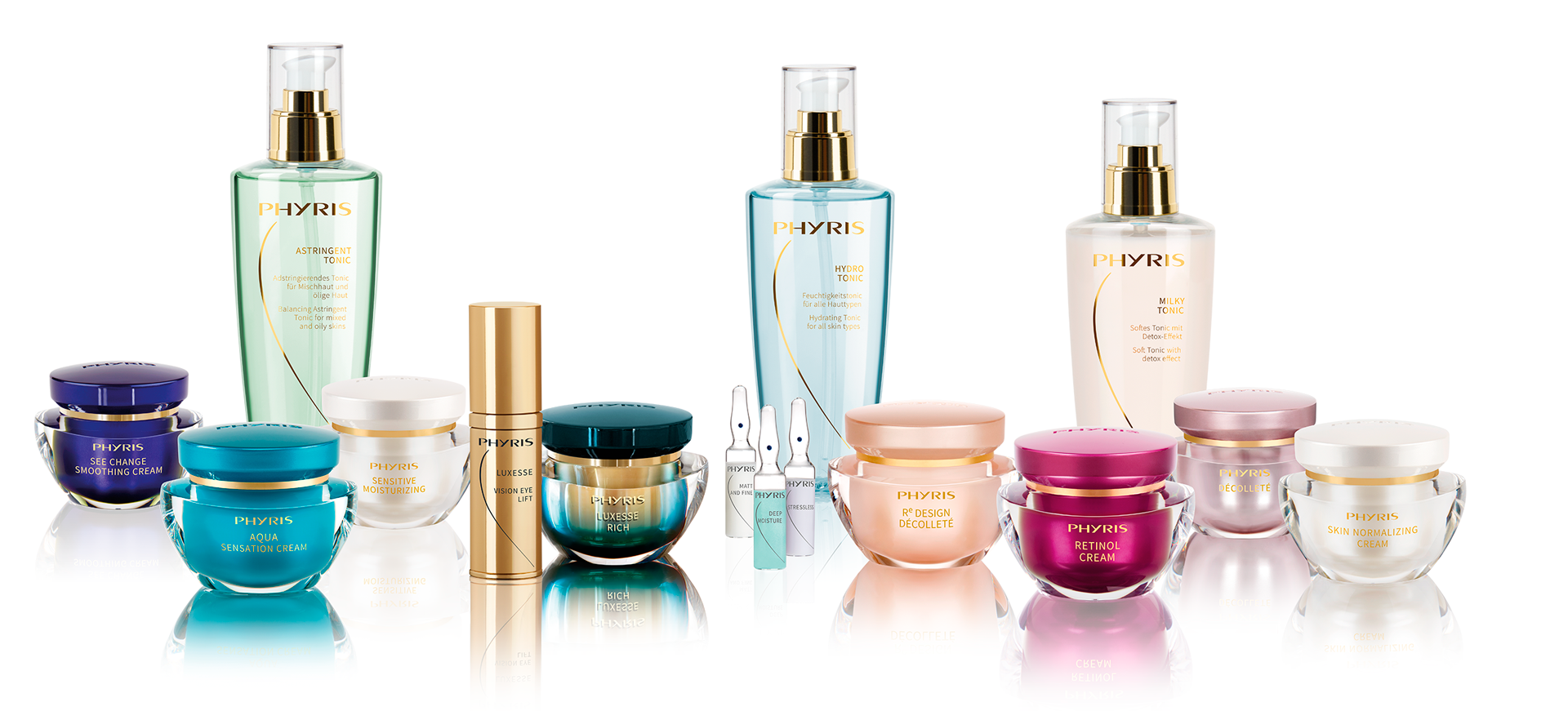 Maailman johtavat kosmetiikka-alan tutkijat, dermatologit ja kokeneet kosmetiikkakemistit ovat kehittäneet PHYRIS-tuotteet, jotka valmistetaan uusimmalla teknologialla lääketeollisuudessakin käytettyjen standardien mukaisesti. Tuotteissa käytetään luonnosta saatavia ensiluokkaisia vaikutusaineita.