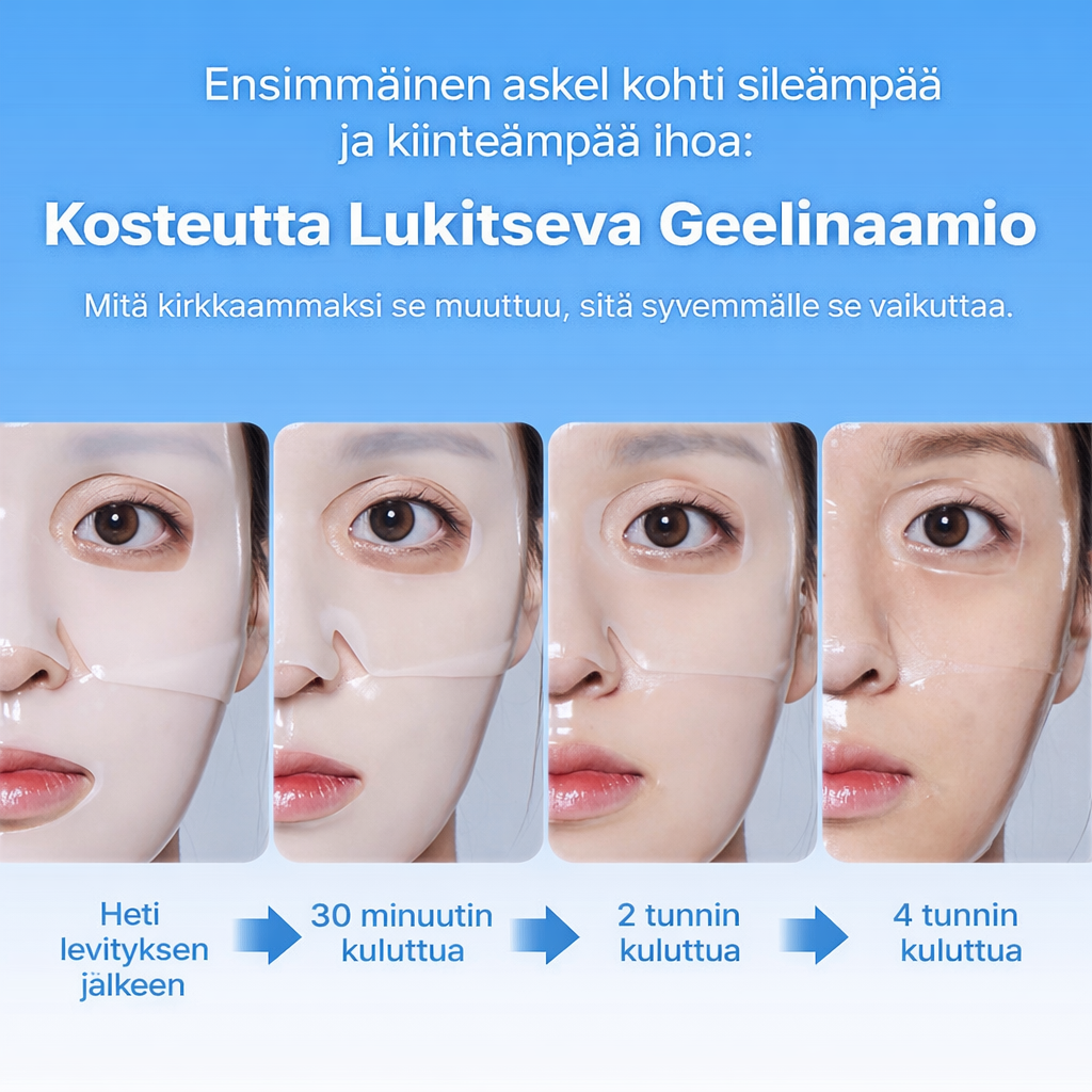 PDRN Collagen Gel Mask on hydrogeelikasvonaamio, joka on suunniteltu intensiiviseen ihon syväkosteutukseen, kiinteyttämiseen ja nuorekkaan ulkonäön tukemiseen. Se on tehokkaasti kosteuttava ja anti-age-vaikutteinen kasvonaamio, joka yhdistää PDRN-kompleksin ja kollageenin tukemaan ihon elastisuutta, kiinteyttä ja kosteustasapainoa. Naamio on paksua hydrogeelilevyä, joka auttaa pitämään aktiiviset ainesosat iholla pidempään vaikuttaen tyypillisesti 30–60 minuuttia tai jopa pidempään. Mitä pidempään naamio vaikuttaa, sen syvempi kokonaisvaikutuksesta tulee. Naamio vaalenee vaikutusaikana, joka tarkoittaa, että naamion vaikutusaineet imeytyvät ihoon. Kliinisten testien mukaan 4 tunnin vaikutusajan jälkeen ihon kosteuspitoisuus on parantunut 179,3%. Voidaan käyttää esimerkiksi ennen erityistä tilaisuutta tai säännöllisenä hoitona. Hyvä valinta, kun halutaan nopea ja näkyvä hoitotulos kotikäytössä. Voi jättää vaikuttamaan iholle yön yli. Sopii kaikille ihotyypeille. Myös erittäin herkälle.