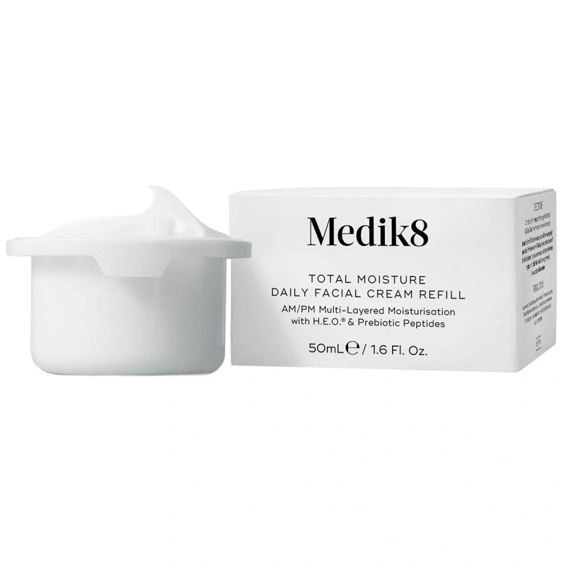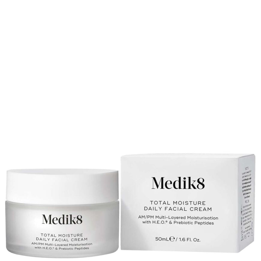 Total Moisture Daily Facial Cream perustuu Medik8:n kosteutusstrategiaan: H.E.O.Ⓡ -teknologia sisältää optimoidun yhdistelmän humektantteja (kosteuttavia), emollientteja (ravitsevia) ja okklusiiveja (kosteuden lukitsevia). Nämä on huolellisesti optimoitu tarjoamaan tehokasta syvää kosteutusta, samalla pitäen sen sopivana päivittäiseen käyttöön kevyen koostumuksen ansiosta.